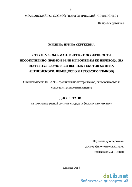 - Сравнительная характеристика структуры несобственно-прямой речи в английской, немецкой и русской художественной прозе ХХ века