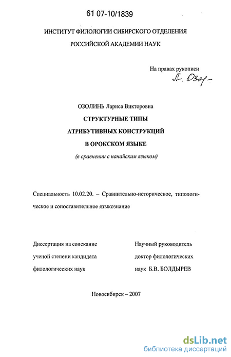 Апробация работы Основные положения исследования излагались в итоговых отчетах РГНФ по исследовательским проектам 2001-2003 гг «Орокский язык (исследования и материалы) т I Грамматика орокского языка» (грант № 01-04-16300 а) и 2004-2006 гт «Синтаксис орокского языка» (грант 04-04-00400а), докладывались и обсуждались на региональных конференциях «Языки народов Сибири и сопредельных регионов» в Институте филологии СО РАН (1999, 2001 гг ), на международных конференциях «Языки культура и будущее народов Арктики» (Якутск, 1993 г), «Аборигены Сибири: проблемы изучения исчезающих языков и культур» (Новосибирск, 1995 г), «Сравнительно- историческое и типологическое изучение языков и