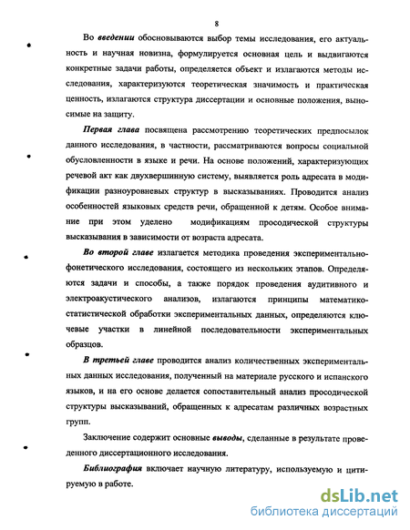 3) выявить роль отдельных просодических подсистем в формировании специфики речи, обращенной к детям, на материале русского и испанского языков;