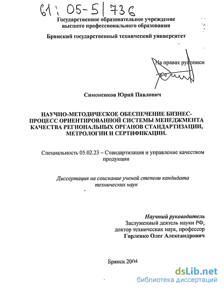Глава 2. Научно-методическое обеспечение бизнес-процесс ориентированной системы менеджмента качества региональных органов стандартизации, метрологии и сертификации 35