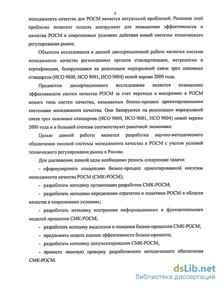 Предметом диссертационного исследования является повышение эффективности систем качества РОСМ за счет перехода к внедрению в РОСМ нового типа систем качества, называемых бизнес-процесс ориентированными системами менеджмента качества. Они базируются на реализации неразрывной связи трех основных стандартов (ИСО 9000, ИСО 9001, ИСО 9004) новой версии 2000 года и в большей степени соответствуют рыночной экономике.