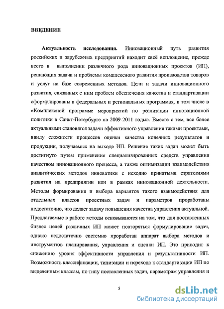 Актуальность исследования. Инновационный путь развития российских и зарубежных предприятий находит своё воплощение, прежде всего в выполнении различного рода инновационных проектов (ИП), решающих задачи и проблемы комплексного развития производства товаров и услуг на базе современных методов. Цели и задачи инновационного развития, связанных с ним проблем обеспечения качества и стандартизации сформулированы в федеральных и региональных программах, в том числе в «Комплексной программе мероприятий по реализации инновационной политики в Санкт-Петербурге на 2009-2011 годы». Вместе с тем, все более актуальными становятся задачи эффективного управления такими проектами, ввиду сложности процессов оценки качества конечных результатов и продукции, получаемых на выходе ИП. Решение таких задач может быть достигнуто путем применения специализированных средств управления качеством инновационного процесса, а также оптимизации взаимодействия аналитических методов инноватики с исходно принятыми стратегиями развития на предприятии или в рамках инновационной деятельности. Методы формирования и выбора вариантов такого взаимодействия для отдельных классов проектных задач и параметров проработаны недостаточно, что делает задачу повышения качества управления актуальной. Предлагаемые в работе методы основываются на том, что для поставленных бизнес целей различных ИП может повторяться формулирование задач, однако недостаточно системно проработан аппарат выбора методов и инструментов планирования, управления и оценки ИП. Это приводит к снижению уровня эффективности управления и результативности ИП. Возможность классификации, типизации и перехода к стандартизации ИП по выделенным классам, по типу поставленных задач, параметрам управления и критериям оценки не используется экспертами и менеджерами ИП, которые обычно полагаются на интуицию и методы «проб и ошибок».