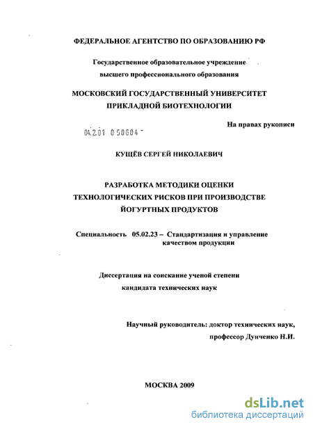 Целью диссертационной работы является разработка методики оценки технологических рисков производства йогуртных продуктов путем структурирования возможных источников опасностей и пороков продукта.