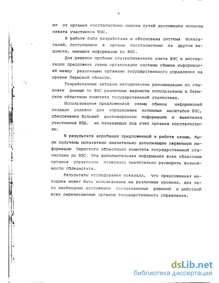 Разработанные автором методические рекомендации по стыковке данных по ВЭС различных ведомств использованы в Пермском областном комитете государственной статистики.