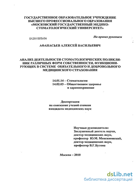 Совершенствование деятельности стоматологических поликлиник различных форм собственности, функционирующих в системе медицинского страхования.