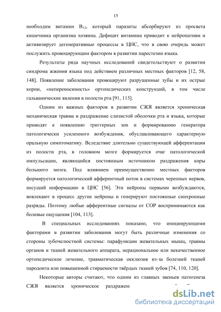 Пациенты с парестезиями языка приходят за помощью к оториноларингологам, терапевтам, психиатрам, невропатологам, поэтому данная проблема представляет интерес не только для врачей-стоматологов, но и для специалистов узкого профиля. Будучи достаточно распространённым стоматологическим заболеванием, для которого характерны мучительные жгучие боли и парестезии в слизистой оболочке полости рта, СЖЯ способствует снижению трудоспособности, угнетению психики и развитию депрессивных состояний [64, 86, 129, 139]. Заболевание с различной интенсивностью может продолжаться годами.