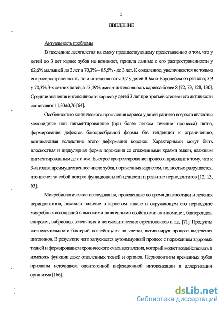 В последние десятилетия на смену предшествующему представлению о том, что у детей до 3 лет кариес зубов не возникает, пришли данные о его распространенности у 62,6% малышей до 2 лет и 70,3% - 85,5% - до 3 лет. К сожалению, увеличивается не только его распространенность, но и интенсивность: 3,7 у детей Южно-Европейского региона; 3,9 у 70,3% 3-х летних детей, а 13,49% имеют интенсивность кариеса более 8 [72,73,128,130]. Средние значения интенсивности кариеса у детей 3 лет при третьей степени его активности составляют 11,33±0,76 [64].