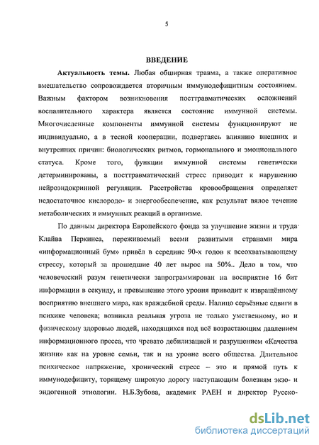Актуальность темы. Любая обширная травма, а также оперативное вмешательство сопровождается вторичным иммунодефицитным состоянием. Важным фактором возникновения посттравматических осложнений воспалительного характера является состояние иммунной системы. Многочисленные компоненты иммунной системы функционируют не индивидуально, а в тесной кооперации, подвергаясь влиянию внешних и внутренних причин: биологических ритмов, гормонального и эмоционального статуса. Кроме того, функции иммунной системы генетически детерминированы, а посттравматический стресс приводит к нарушению нейроэндокринной регуляции. Расстройства кровообращения определяет недостаточное кислородо- и энергообеспечение, как результат вялое течение метаболических и иммунных реакций в организме.