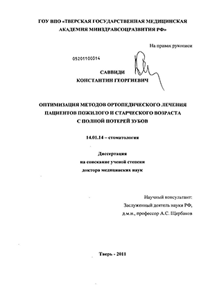 ПУБЛИКАЦИИ. По теме диссертации опубликованы 24 научные работы. Получены два патента на изобретение: «Способ установления оптимальных границ базисов полных съемных протезов верхней и нижней челюсти при неблагоприятных клинических условиях протезного ложа» (рег. № 2274429 по заявке № 113972 от 12 мая 2005 г.) и «Способ протезирования на беззубой нижней челюсти с повторением рельефа внутренней поверхности базиса старого протеза у пациентов с тяжелыми клиническими условиями для протезирования» (рег. № 2293541 по заявке № 115177 от 2 мая 2007 г.).