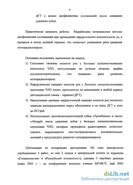Публикации по материалам диссертации. По теме диссертации опубликовано 5 работ, из них 2 статьи в центральной печати (в журналах «Стоматология» и «Российский стоматолог»), сделано 3 научных доклада (март 2003 г-на конференции молодых ученых МГМСУ, май 2003