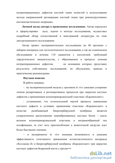 Таким образом, экспериментально-клиническим путем установлена целесообразность применения ксеноперикардиальной пластины «Кардиоплант» в качестве биорезорбируемой мембраны в сочетании с остеопластическим материалом «Коллапан-Л». Данный способ лечения позволяет создать условия для оптимальной регенерации костной ткани, уменьшить количество послеоперационных осложнений по сравнению с методикой ведения раны под кровяным сгустком и повысить эффективность лечения больных при реконструктивных костнопластических операциях на альвеолярных отростках челюстей и использовании метода направленной регенерации костной ткани.