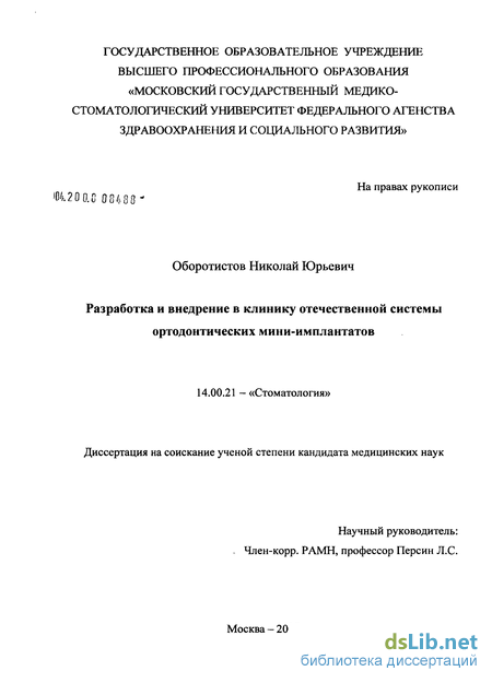 10. Оборотистое Н.Ю., Мураев А.А., Полъма Л.В., Персии Л.С., Иванов СЮ. Новая система ортодонтических мини-имплантатов «РОМ». // Сборник трудов XXIX итоговой научной конференции молодых ученых МГМСУ. Москва - 2007. - С. 287-2 11. Оборотистое Н.Ю., Персии Л.С., Полъма Л.В., Мураев А.А. Применение ортодонтических имплантатов при лечении зубочелюстных аномалий. // Ортодонтия. - 2007. - №3(39). - С. 71.