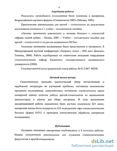 5 4. Определить эффективность применения разработанных основ протоколов методом повторного анкетного интервьюирования врачей — стоматологов и анализа медицинских карт стоматологических больных.