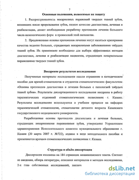 Разработанные основы протоколов диагностики и лечения больных, страдающих некариозными поражениями зубов, утверждены Управлением здравоохранения Исполнительного комитета муниципального образования г. Казани (20 марта 2007 г. №722), изданы в виде методического пособия и применяются врачами стоматологических поликлиник г. Казани.
