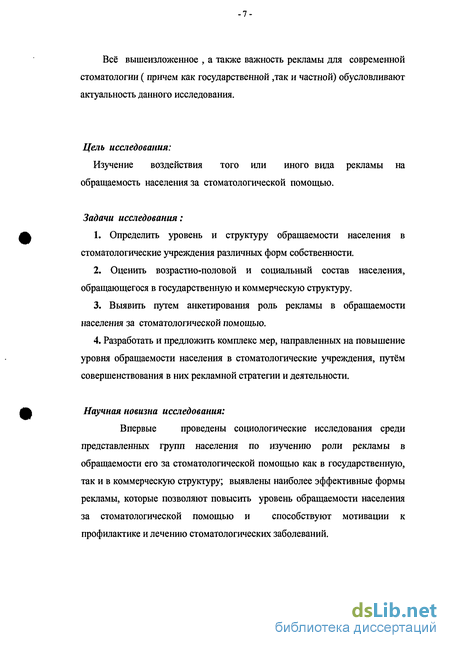 Всё вышеизложенное , а также важность рекламы для современной стоматологии ( причем как государственной ,так и частной) обусловливают актуальность данного исследования.