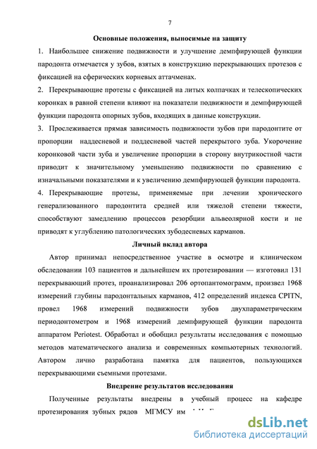 - Изменение подвижности зубов и демпфирующей функции пародонта в динамике, измеренное у зубов, взятых в конструкцию перекрывающих протезов с фиксацией на телескопических коронках