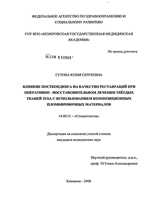 Апробация работы проведена на межкафедральном совещании кафедр терапевтической, ортопедической стоматологии, стоматологии детского возраста и кафедры стоматологии ФППС ГОУ ВПО КемГМА Росздрава 30 ноября 2007 года.