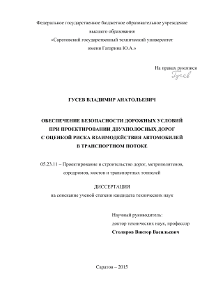 Цель настоящей работы состоит в обеспечении безопасности дорожных условий по пропуску транспортных потоков с применением теории риска при проектировании двухполосных автомобильных дорог.