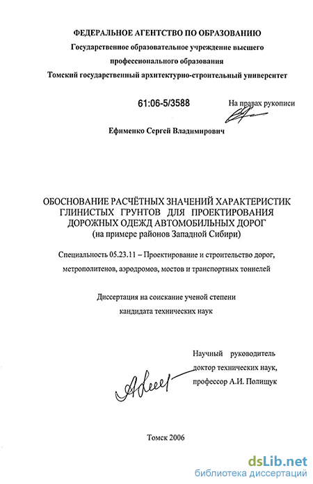 Предмет исследования - состав и свойства глинистых грунтов земляного полотна автомобильных дорог, методы обоснования расчётных значений характеристик влажности, прочности и деформируемости для проектирования нежёстких дорожных одежд.