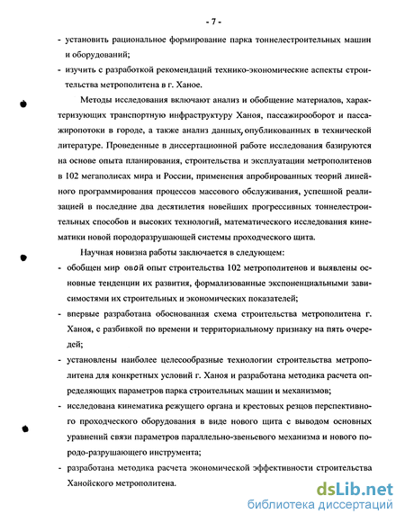 - установлены наиболее целесообразные технологии строительства метрополитена для конкретных условий г. Ханоя и разработана методика расчета определяющих параметров парка строительных машин и механизмов;