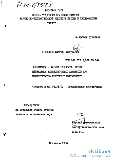 результаты экспериментально-теоретических исследований деформаций и ширины раскрытия трещин изгибаемых элементов при разгрузке и немногократно повторных нагружениях;