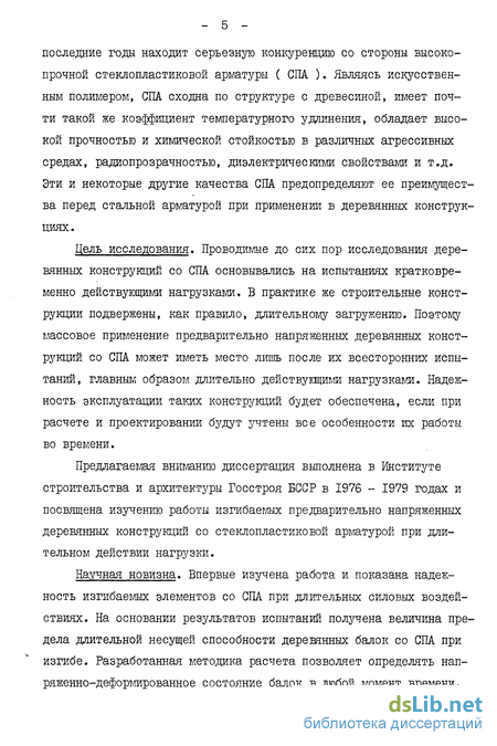 Предлагаемая вниманию диссертация выполнена в Институте строительства и архитектуры Госстроя БССР в 1976 - 1979 годах и посвящена изучению работы изгибаемых предварительно напряженных деревянных конструкций со стеклопластиковой арматурой при длительном действии нагрузки.