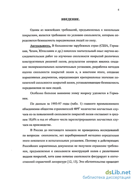 В России до настоящего момента не проводилось исследований по вопросам скользкости покрытий полов, нет апробированной методики определения этого показателя. В действующих Российских нормативных документах не получили отражение требования, предъявляемые к скользкости конструкций полов с различными видами покрытий, хотя само понятие скользкости фигурирует в отечественной справочной литературе. Такое обстоятельство привело к тому, что при проектировании конструкций полов и их устройстве часто закладываются решения с покрытиями, многие из которых не отвечают требованиям безопасности передвижения по ним людей. И это определяет необходимость разработки метода оценки скользкости конструкций полов и нормативной базы, обеспечивающей безопасность передвижения людей по полам с различными видами покрытий.