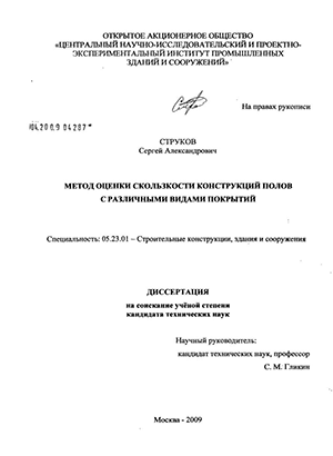 Цель диссертации состоит в разработке метода оценки скользкости покрытий полов, а также в установлении критериев показателей скользкости конструкций полов в зависимости от состояния их поверхности и условий передвижения по ним людей.