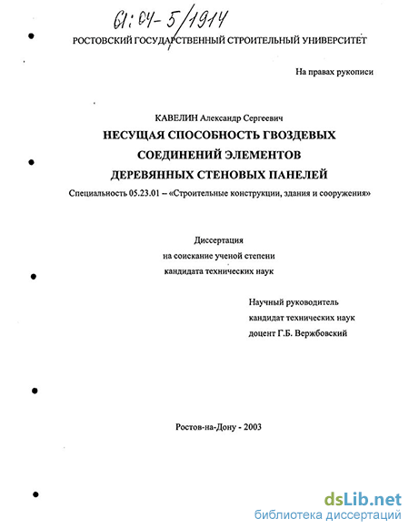 Целью диссертационной работы является обоснование и разработка методики определения несущей способности гвоздевых соединений элементов каркаса деревянных стеновых панелей с обшивками из эффективных листовых материалов.