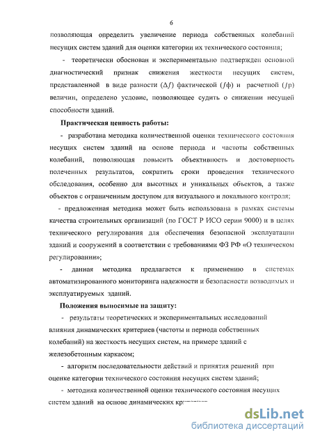 - методика количественной оценки технического состояния несущих систем зданий на основе динамических критериев.