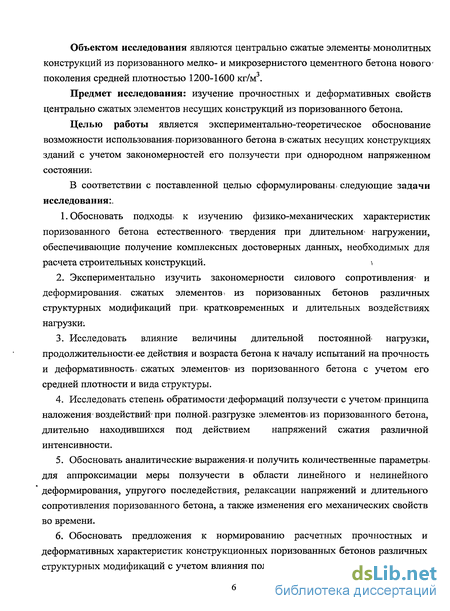 Целью работы является экспериментально-теоретическое обоснование возможности использования, поризованного бетона всжатых несущих конструкциях зданий с учетом закономерностей его ползучести при однородном напряженном