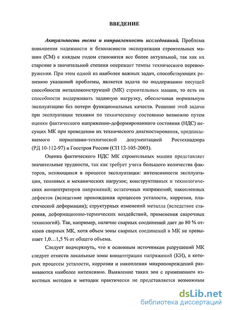 В связи с вышеизложенным, задача повышения надежности и безопасности эксплуатации строительных машин путем разработки рациональных методик контроля и повышения несущей способности их сварных металлоконструкций представляет собой весьма актуальную научно-практическую задачу.