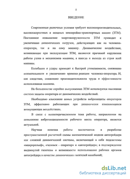 Современные рыночные условия требуют высокопроизводительных, высокоскоростных и мощных землеройно-транспортных машин (ЗТМ). Постоянное повышение энерговооруженности ЗТМ приводит к увеличению динамических нагрузок, действующих как на человека-оператора, так и на саму машину. Динамические воздействия, возникающие при эксплуатации ЗТМ, являются причиной нарушения работы узлов и механизмов машины, а иногда и выхода из строя всей машины.