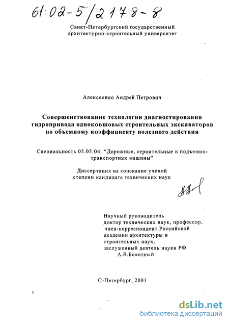 Гидропривод одноковшового строительного экскаватора как объект диагностирования 7