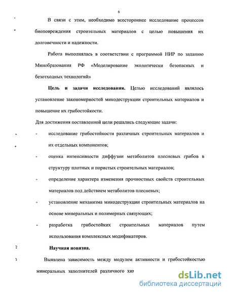 Цель и задачи исследования. Целью исследований являлось установление закономерностей микодеструкции строительных материалов и повышение их грибостойкости. Для достижения поставленной цели решались следующие задачи: