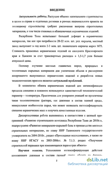 Диссертационная работа выполнялась в соответствии с целевой про-грамммой «Развитие строительного комплекса Республики Тыва до 2010г.», подпрограмма «Развитие минерально-сырьевой базы и производства местных строительных материалов», по плану НИР Тывинского государственного университета на 2004-20 Юг., раздел «Прикладные исследования», а также по плану НИР НГАСУ на 2003-2006гг. № 7.1.3. раздел «Получение строительной керамики при изменяющихся параметрах обжига»
