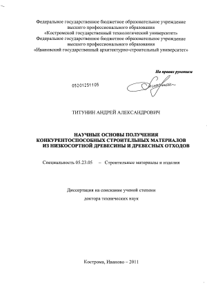 Похожие диссертации на Научные основы получения конкурентоспособных строительных материалов из низкосортной древесины и древесных отходов