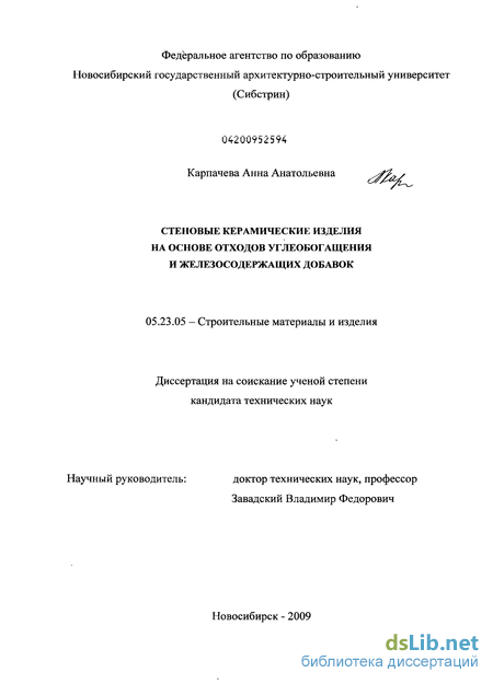 Работа выполнялась в соответствии с планом НИР НГАСУ на 2005 - 2008 г. № 7.1.2 раздел «Стеновые керамические материалы на основе отходов углеобогащения и корректирующих добавок».