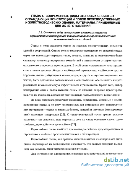 1.1. Основные виды современных слоистых стеновых ограждающих конструкций и покрытий полов производственных и животноводческих зданий 8