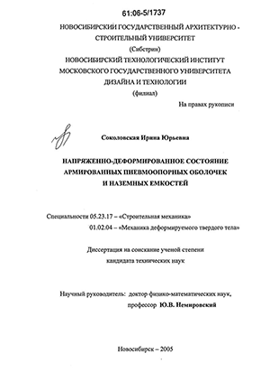 Изучению мягких оболочек посвятили свои работы российские и зарубежные ученые, такие как Д. Адкинс, С.А. Алексеев, Н.А. Alexander, В.Л. Би-дерман, А. Грин, В.В. Ермолов, В.Э. Магула, Ю.В. Немировский, Ф. Отто, Я. Оркиш, Ю.Н. Работнов, Р. Тростель, В.И. Усюкин, К.Ф. Черных и другие. Применительно к армированным пневмоопорным оболочкам и наземным емкостям исследования проводились в рамках нерастяжимости волокон. В настоящее время с развитием производства композиционных материалов активное использование находят мягкие оболочки, армированные семействами растяжимых волокон. Внедрение таких оболочек в практику строительства сдерживается отсутствием методов расчета их напряженно-деформированного состояния.