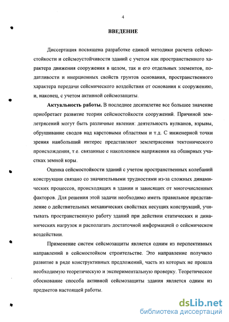 Цели и задачи диссертационной работы. Целью настоящей работы является разработка единой методики расчета сейсмостойкости и сейсмо-устойчивости зданий с учетом как пространственного характера движения сооружения в целом, так и его отдельных элементов, податливости и инерционных свойств грунтов основания, пространственного характера передачи сейсмического воздействия от основания к сооружению, и, наконец, с учетом активной сейсмозащиты.