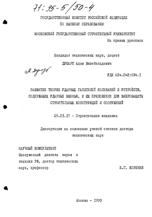 Теория ударных гасителей колебаний значительно менее разработана. Это является одной из причин более редкого использо -вания метода ударного виброгашения, особенно в строительстве, где возникает большое число специфических задач виброзащиты,которое связано, с одной стороны, с необходимостью рассмотрения разнообразных конструкций и сооружений при динамических воздействиях различных типов, и, с другой стороны, с многообразием технических решений и конструктивных форм ударных гасителей колебаний.
