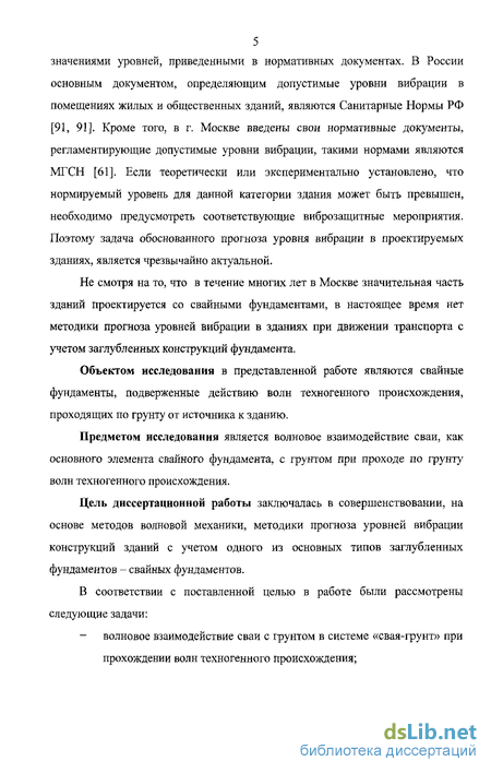 Объектом исследования в представленной работе являются свайные фундаменты, подверженные действию волн техногенного происхождения, проходящих по грунту от источника к зданию.