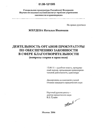 разработка теоретических основ и практических рекомендаций совершенствования деятельности органов прокуратуры по обеспечению законности в сфере благотворительности.