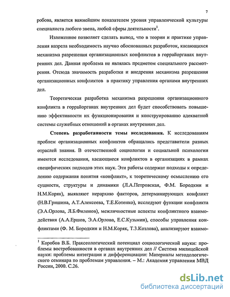 Поэтому одним из направлений совершенствования управления органами внутренних дел является исследование этого важного междисциплинарного направления современной науки - проблем организационных конфликтов с целью выявления их объективной и субъективной природы, причинной обусловленности и механизма эффективного разрешения.