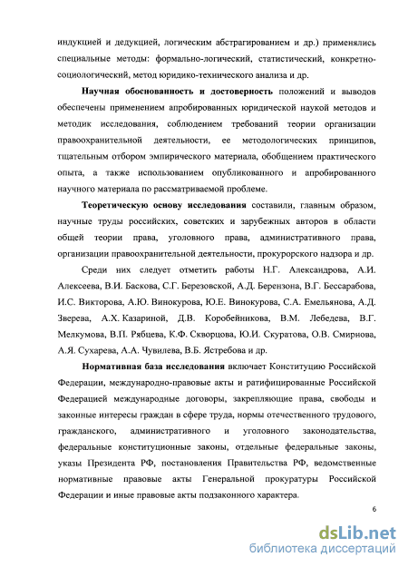 Теоретическую основу исследования составили, главным образом, научные труды российских, советских и зарубежных авторов в области общей теории права, уголовного права, административного права, организации правоохранительной деятельности, прокурорского надзора и др.
