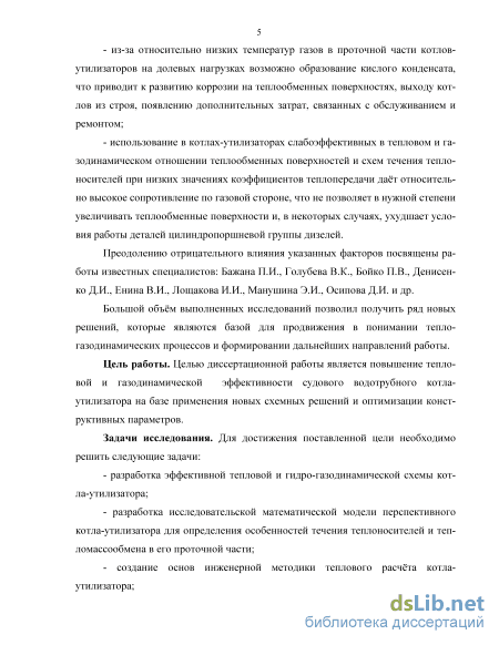 Цель работы. Целью диссертационной работы является повышение тепловой и газодинамической эффективности судового водотрубного котла-утилизатора на базе применения новых схемных решений и оптимизации конструктивных параметров.