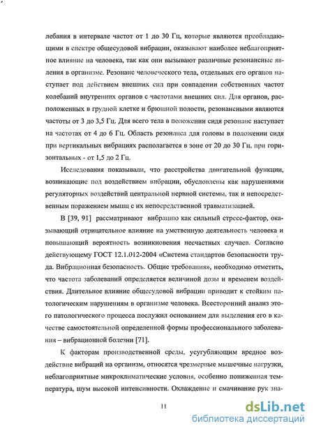 В [39, 91] рассматривают вибрацию как сильный стресс-фактор, оказывающий отрицательное влияние на умственную деятельность человека и повышающий вероятность возникновения несчастных случаев. Согласно действующему ГОСТ 12.1.012-2004 «Система стандартов безопасности труда. Вибрационная безопасность. Общие требования», необходимо отметить, что частота заболеваний определяется величиной дозы и временем воздействия. Длительное влияние общесудовой вибрации приводит к стойким патологическим нарушениям в организме человека. Всесторонний анализ этого патологического процесса послужил основанием для выделения его в качестве самостоятельной определенной формы профессионального заболевания - вибрационной болезни [71].