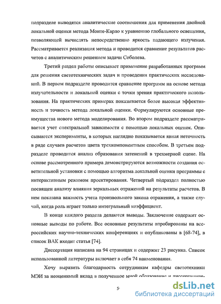 4. На основе оценок метода Монте-Карло можно получить решение не только уравнения излучательности, но и, непосредственно, уравнения глобального освещения в точке, что должно позволить впервые полностью физически строго моделировать осветительные установки.