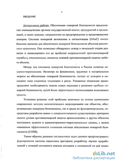 Успешное решение этой проблемы возможно на основе применения современных методов математического моделирования как объектов, обеспечивающих пожарную безопасность, так и среды их функционирования, посредством разработки новых и совершенствования существующих критериев оценки уровня противопожарной защиты промышленных и других объектов населенных пунктов и административно-территориальных единиц, с целью повышения эффективности элементов системы обеспечения пожарной безопасности (СОПБ).